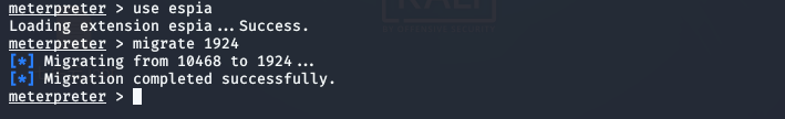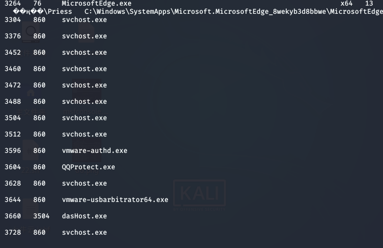 如:我想将shell的进程变为 QQProtect.exe 的进程,执行migrate 3604即可。