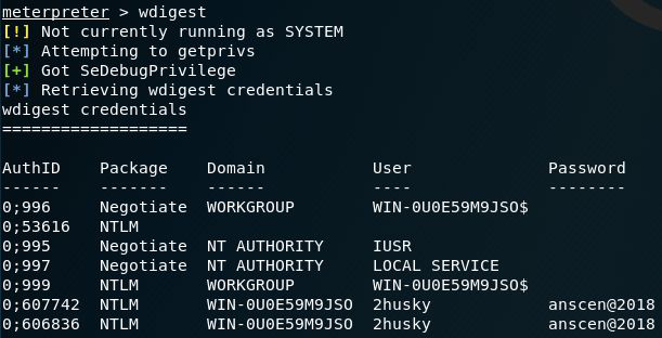 使用wdigest命令获取登录过的用户储存在内存里的明文密码。