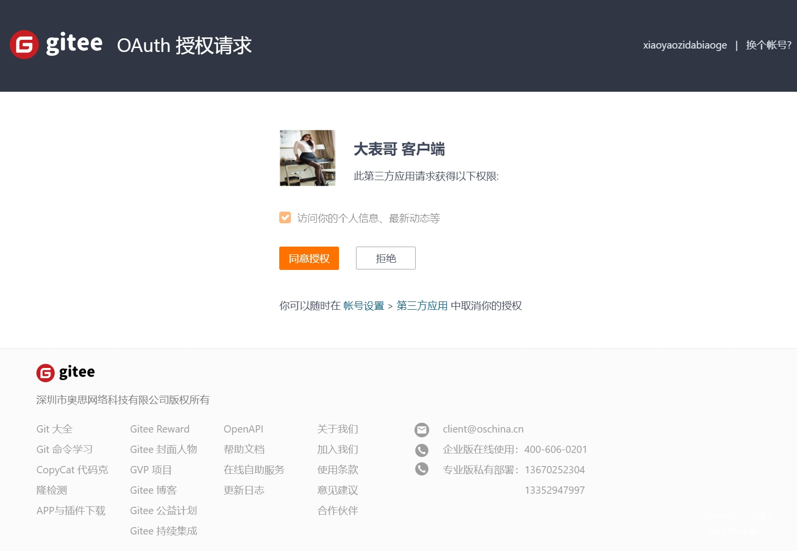 进入主页后,点击登录。输入账号B的信息,进行登录Gitee。出现授权页面时,点击授权。