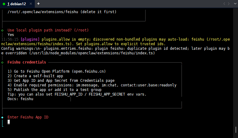 openclaw plugins install @m1heng-clawd/feishu配置飞书插件